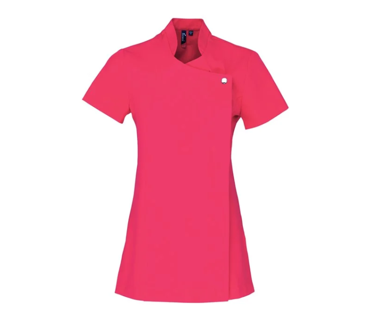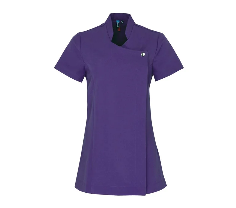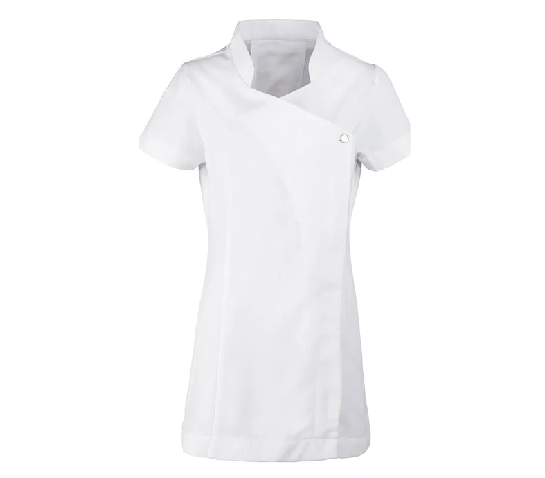 Upgrade your wardrobe with our stylish and versatile Short Sleeve Tunic. Premier's 'Blossom' beauty and spa tunic has a feature button front fastening with a concealed zip. The short sleeves and princess seams along with side vents and a black pleat make for a practical garment that is easy to work in whilst retaining style.