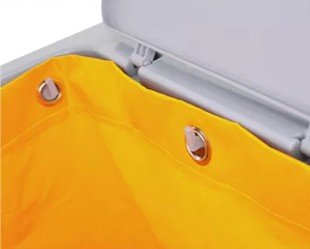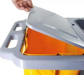 Simply attach the yellow bag to your janitor cart using the adjustable straps. It's quick and easy to install, so you can start using it right away.